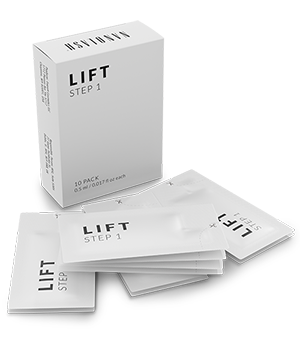 Nach der Vorbereitung der Wimpern tragen Sie Step 1 Lift auf die Wimpern auf, indem Sie vom Wimpernansatz anfangen. Denken Sie daran, ca. 1 mm Abstand von der Wasserlinie zu halten und das Präparat auf die Wimpernspitzen nicht aufzutragen. Lassen Sie das Produkt 7–10 Minuten lang einwirken (in Abhängigkeit vom Wimpernzustand). Wenn die Zeit um ist, entfernen Sie das Präparat mit einem Wattepad oder Applikator. Eine Verpackung enthält 10 Beutel des Aktivators zum Lifting und zur Lamination der Wimpern.